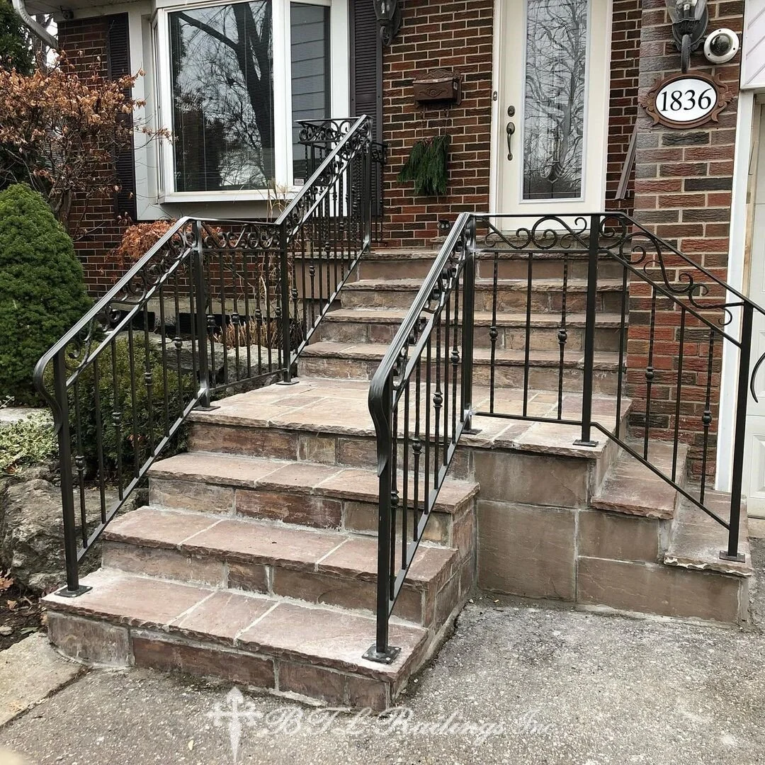 Classic Ornate Wrought-Iron Railings — Hand-crafted scrollwork and decorative details that never go out of style. Ideal for front porch railings Toronto and heritage homes.